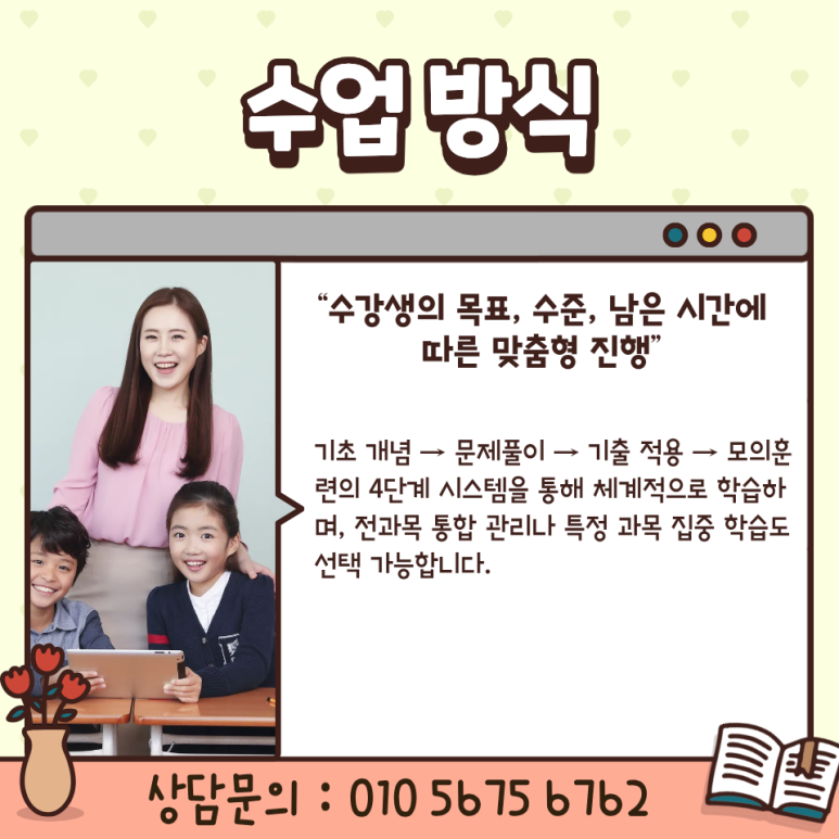검정고시는 단순히 한 번의 시험으로 끝나는 과정이 아니라, 중졸부터 고졸까지 이어지는 장기적인 학습 여정입니다. 특히 학업을 오랜 기간 쉬었던 학습자라면 기초부터 차근차근 다지고, 이후 고졸 검정고시와 대학 진학까지 연결되는 흐름을 설계하는 것이 중요합니다. 인천동구 검정고시과외는 이러한 점을 고려해 중졸부터 고졸까지 이어지는 학습 과정을 단계적으로 지도합니다.